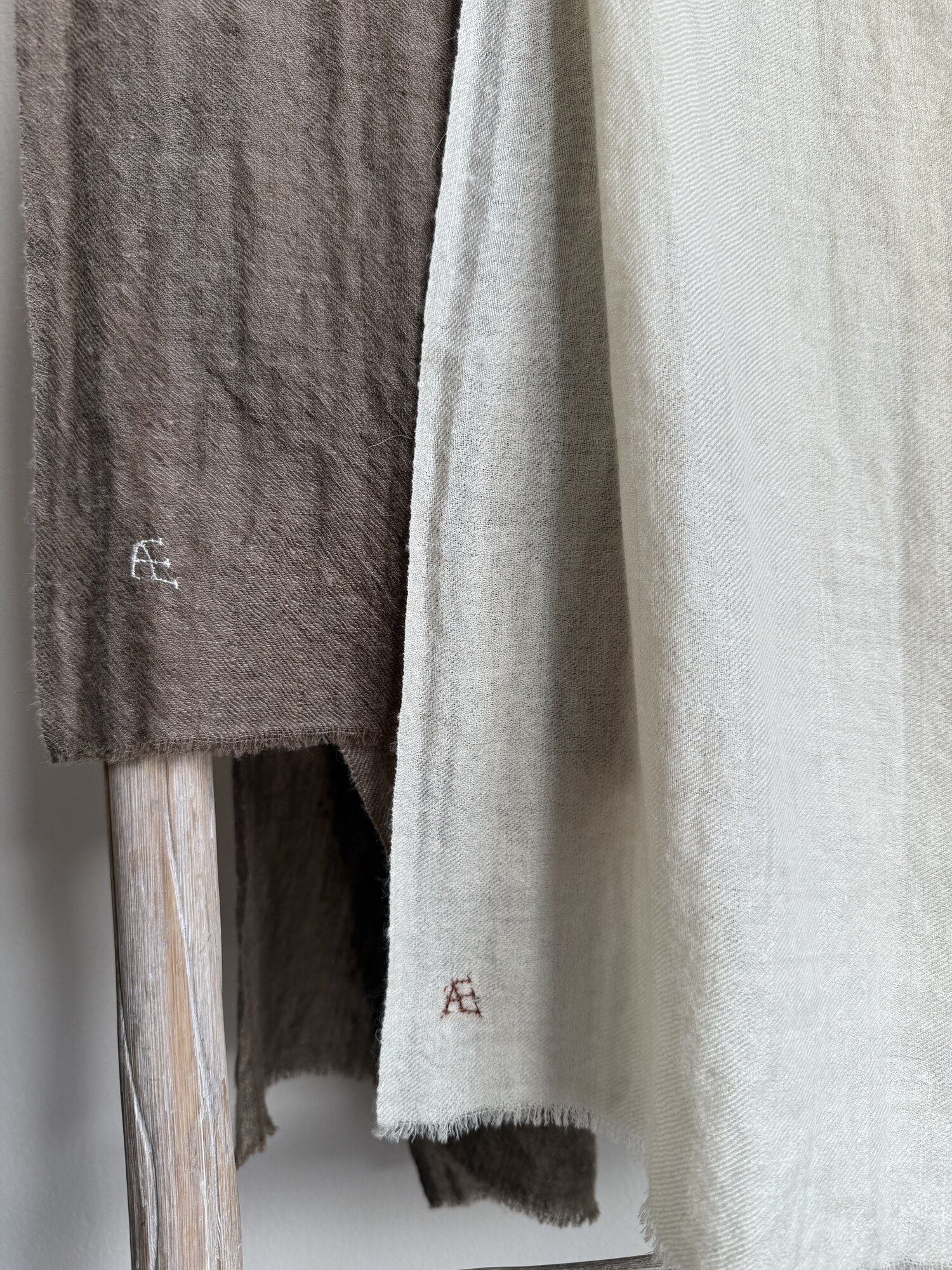Hvert tørklæde bærer væverens egen lille, broderede signatur. Den kan variere fra tørklæde til tørklæde og gør hvert eneste stykke helt unikt. Det er den slags luksus, der ikke råber højt – men bare føles rar, blød og varm. Du finder dem her i shoppen i begrænset oplag og i tre smukke farver.